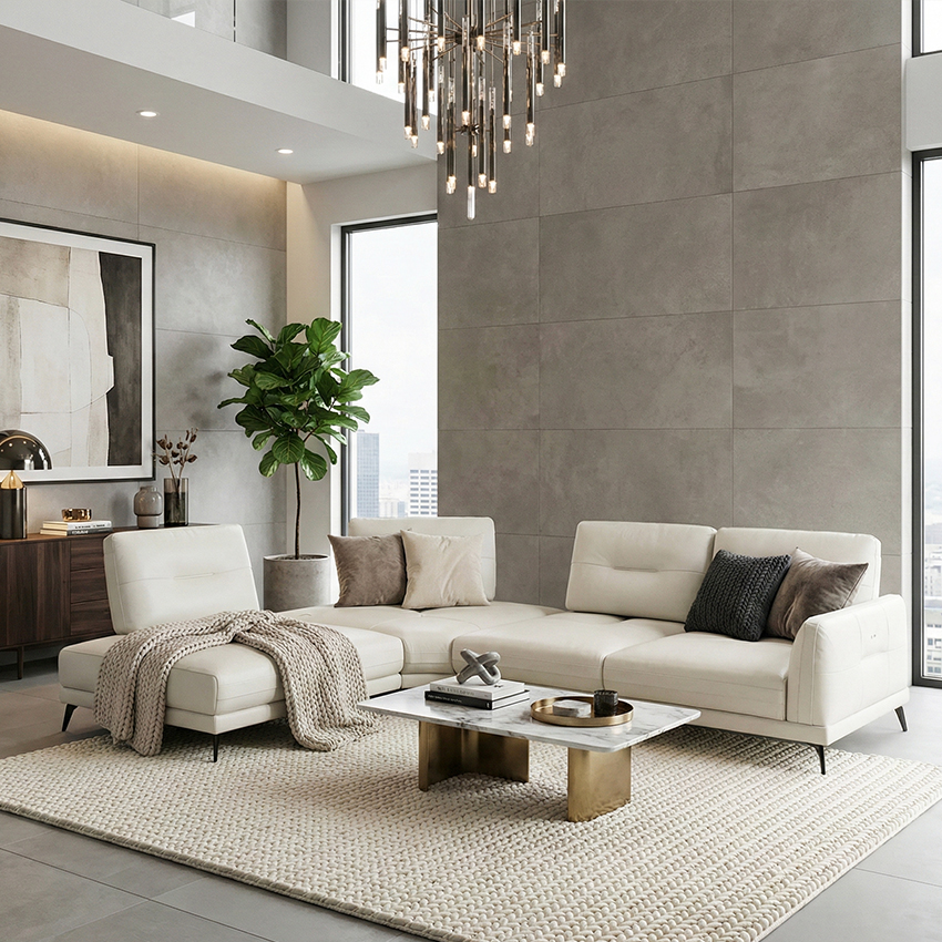 FE14 Leather Chaise Sofa