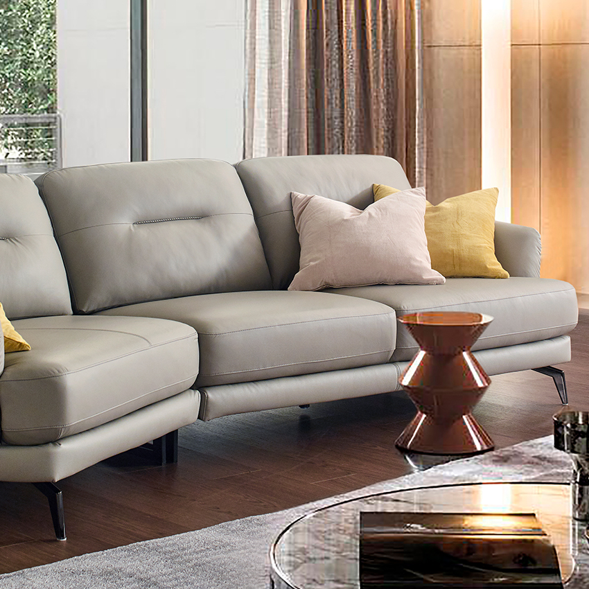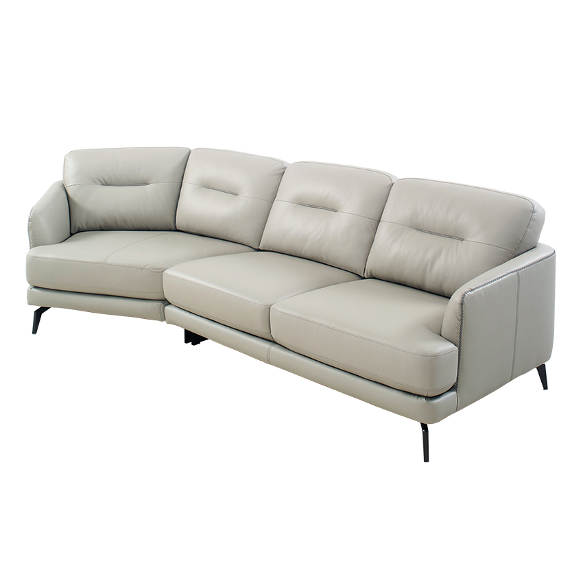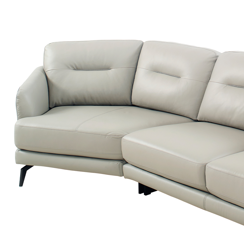 ZA73-Light Grey Leather Chaise Sofa
